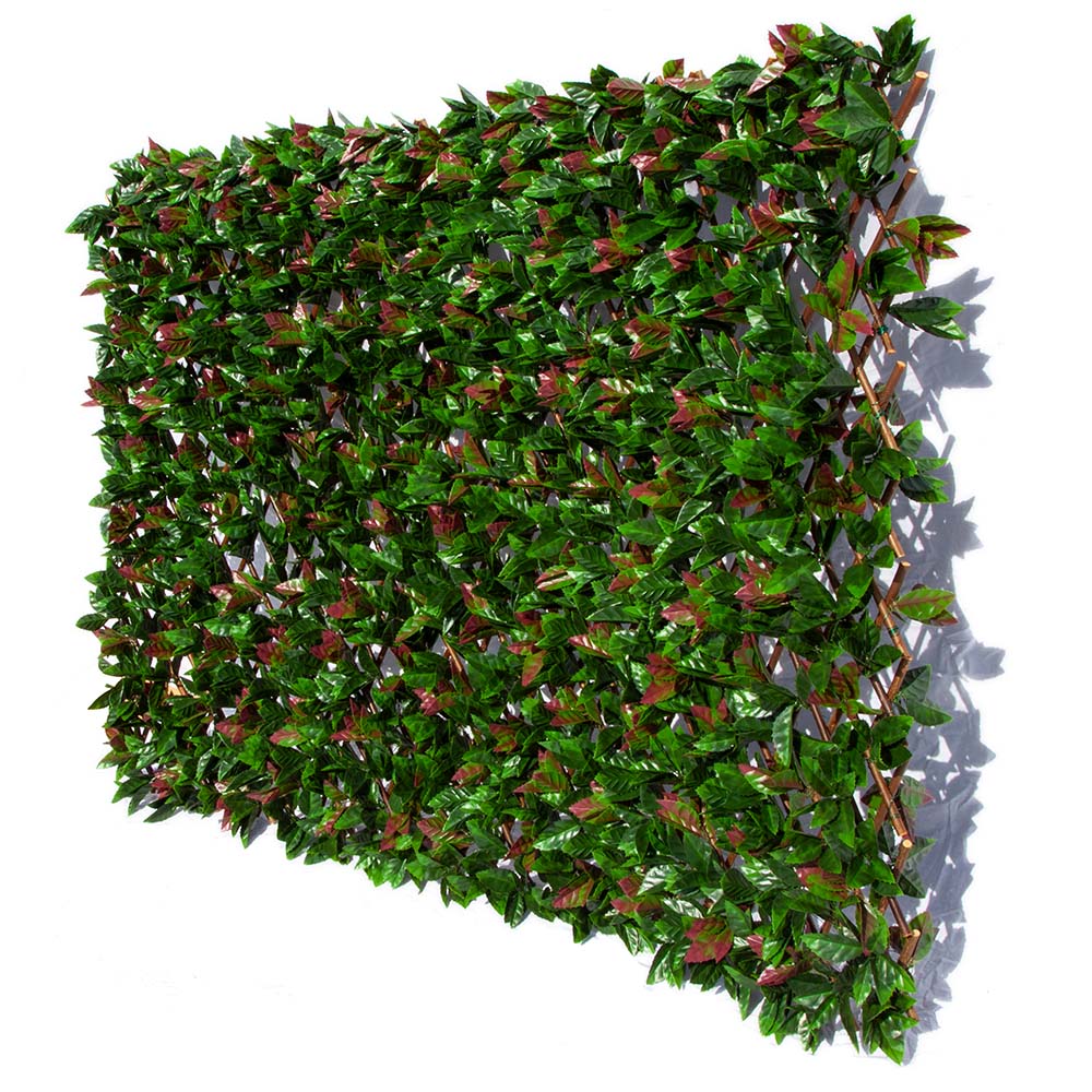 Bring vibrant greenery to your space with the Photinia Willow Artificial Hedge Extendable Trellis. A stunning blend of lifelike foliage with red accents, perfect for creating a lush, private, and stylish backdrop.
